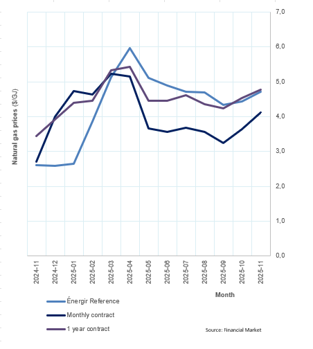 Énergir’s price is calculated monthly and approved by the Régie de l’énergie. It varies from month to month.