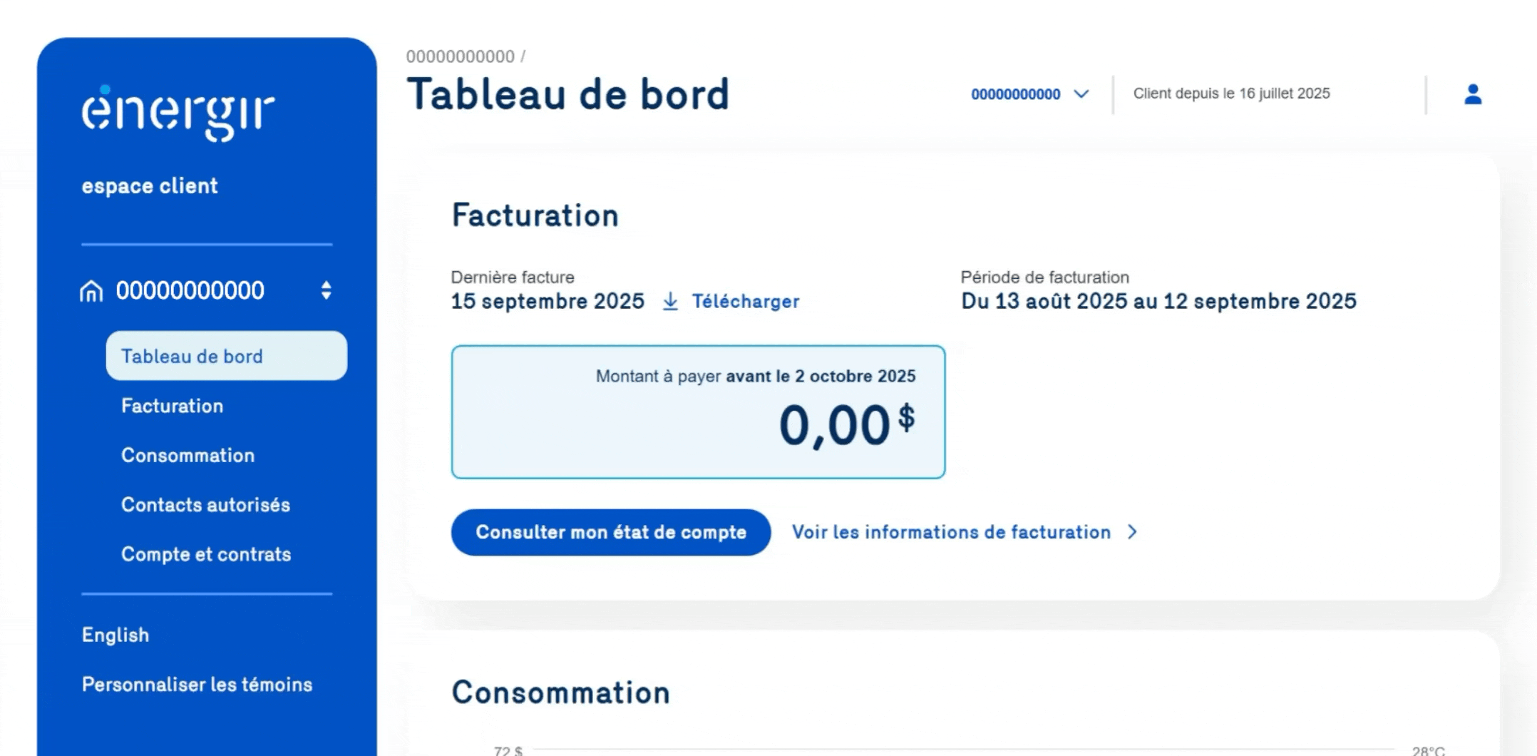 Vous pouvez demander une modification de la quantité de votre achat volontaire de gaz naturel renouvelable en tout temps. En tant que client·e, pour une entrée en vigueur le 1er jour du mois suivant, vous devez soumettre votre demande au plus tard le 20e jour du mois courant. Les demandes reçues après le 20e jour du mois seront traitées avec les demandes du mois suivant. La demande de changement se fait directement dans l’Espace client en précisant le pourcentage d'achat révisé et la date d’entrée en vigueur souhaitée.