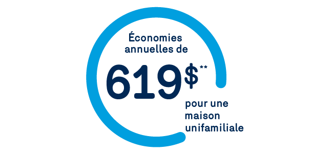 ** À titre indicatif seulement. Le montant d’économies annuelles moyennes pour le chauffage de l’espace varie selon différents paramètres, notamment le type de résidence ou les équipements installés. Calculs basés notamment sur les prix d'octobre 2025 pour les tarifs d’Énergir et d’Hydro-Québec.